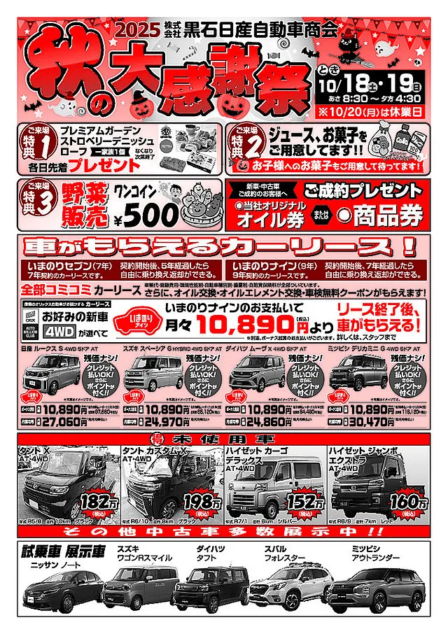 秋の訪れとともに、黒石日産自動車商会では毎年恒例の「大感謝祭」が開催されます。